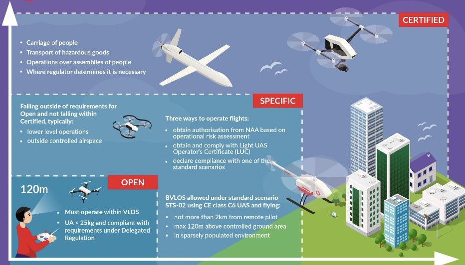 - BVLOS/VLOS --> altitud > 120m.